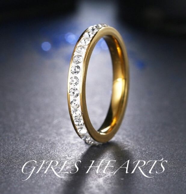 送料無料 訳あり 14号 イエローゴールド スーパーCZダイヤモンド サージカルステンレス フルエタニティ ラブリング指輪です。