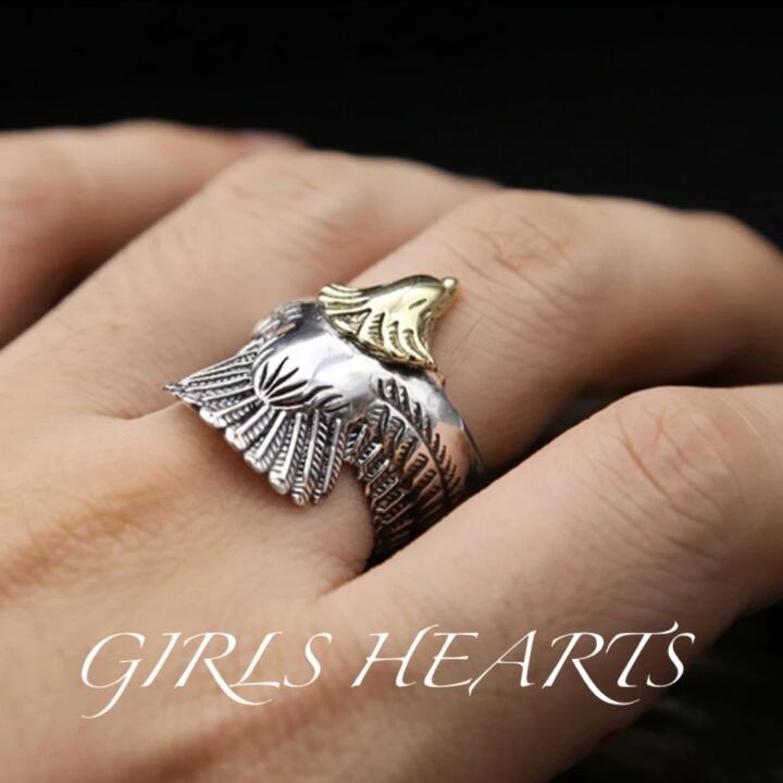 送料無料 12号 クロム シルバー ワンポイント ゴールド ビッグ メタル イーグル リング 指輪 です。