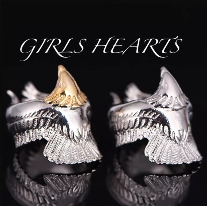 送料無料 18号 クロム シルバー ワンポイント ゴールド ビッグ メタル イーグル リング 指輪 です。