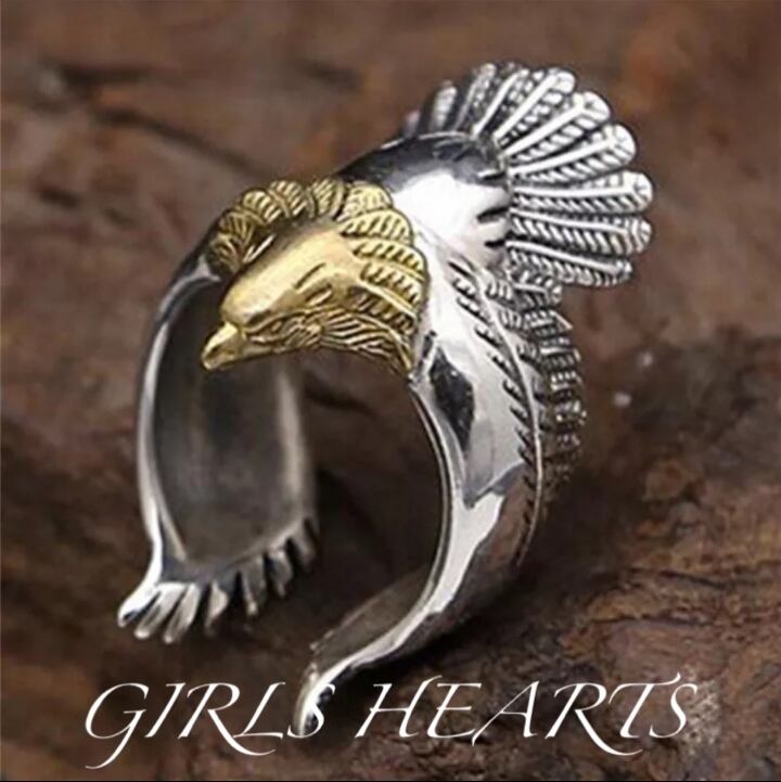 送料無料 21号 クロム シルバー ワンポイント ゴールド ビッグ メタル イーグル リング 指輪 です。