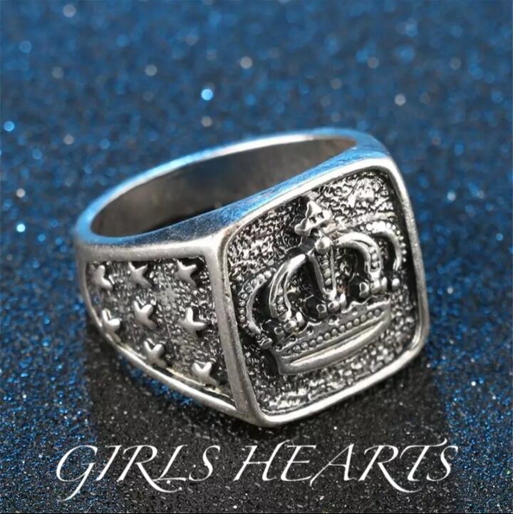 送料無料 18号 クロム シルバー クラウン 王冠 スタンプ リング 指輪 です。