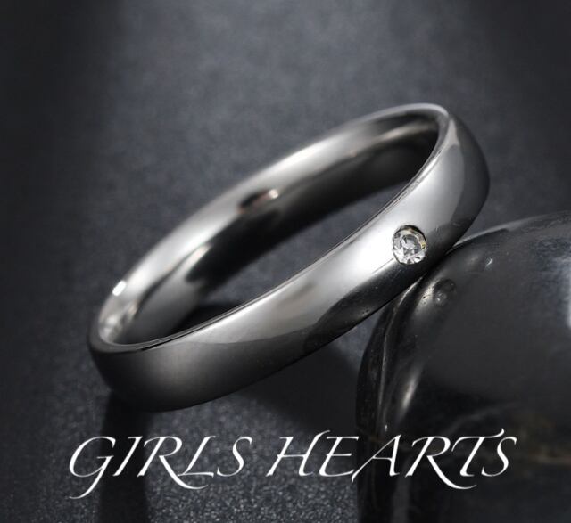 送料無料 13号クロムシルバーワンポイントスーパーCZダイヤモンドサージカルステンレスシンプルラブリング指輪です♪