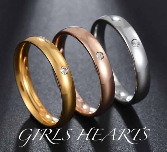 送料無料 24号ピンクゴールドワンポイントスーパーCZダイヤモンドサージカルステンレスシンプルラブリング指輪です♪