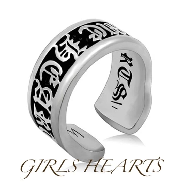 送料無料 18号 クロム シルバー サージカルステンレス スクロール ラベル リング 指輪 です。