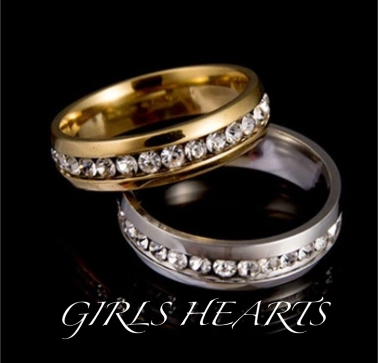 送料無料 7号イエローゴールドスーパーCZダイヤモンドサージカルステンレスフルエタニティラブリング指輪です♪